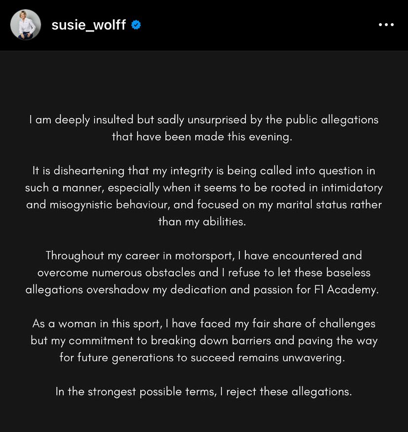 Nadat er afgelopen weekend een artikel verscheen in F1 Business Magazine over mogelijke belangenverstrengeling van Wolff, opende de FIA op dinsdagavond een onderzoek. De Formule 1, Mercedes en Susie Wolff reageerden woedend. In het artikel werd gesteld dat een aantal teambazen zich zorgen zouden maken over vertrouwelijke FOM-informatie in handen van Wolff. Maar de overige teams ontkenden dit. In een gezamenlijk statement lieten alle teams weten dat ze er niets mee te maken hebben.