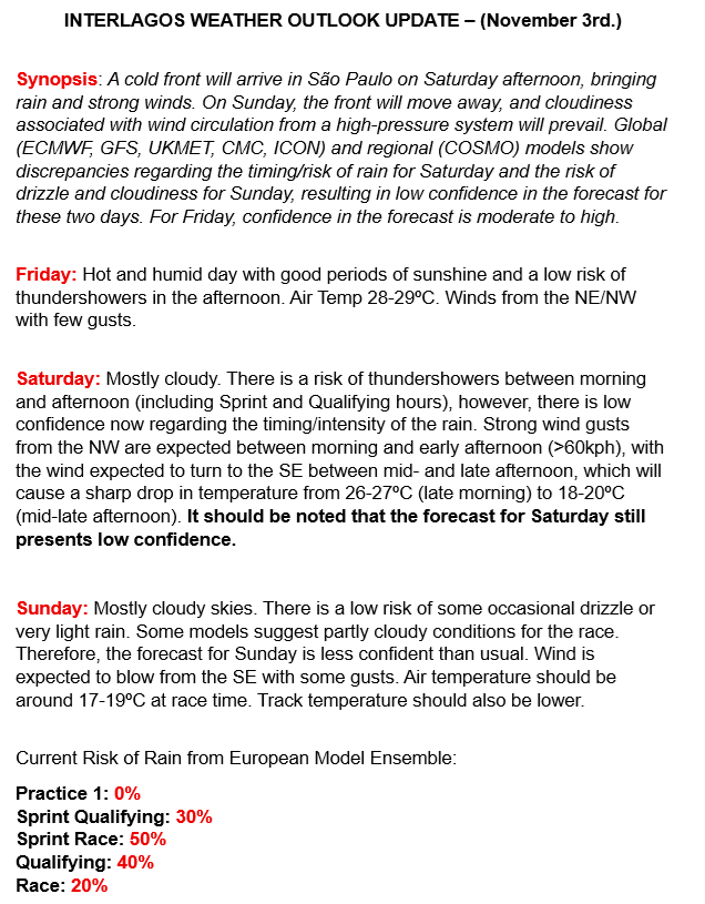 Verstappen schreef vorig jaar de race op heroïsche wijze op zijn naam. Hij is al een aantal dagen in Brazilië bij zijn schoonfamilie, en hij heeft er zin in. In zijn preview klinkt hij enthousiast: "Brazilië is een bijzondere plek voor mij, niet alleen vanwege de geweldige races en momenten die we daar hebben meegemaakt, maar ook omdat mijn schoonfamilie uit Brazilië komt."